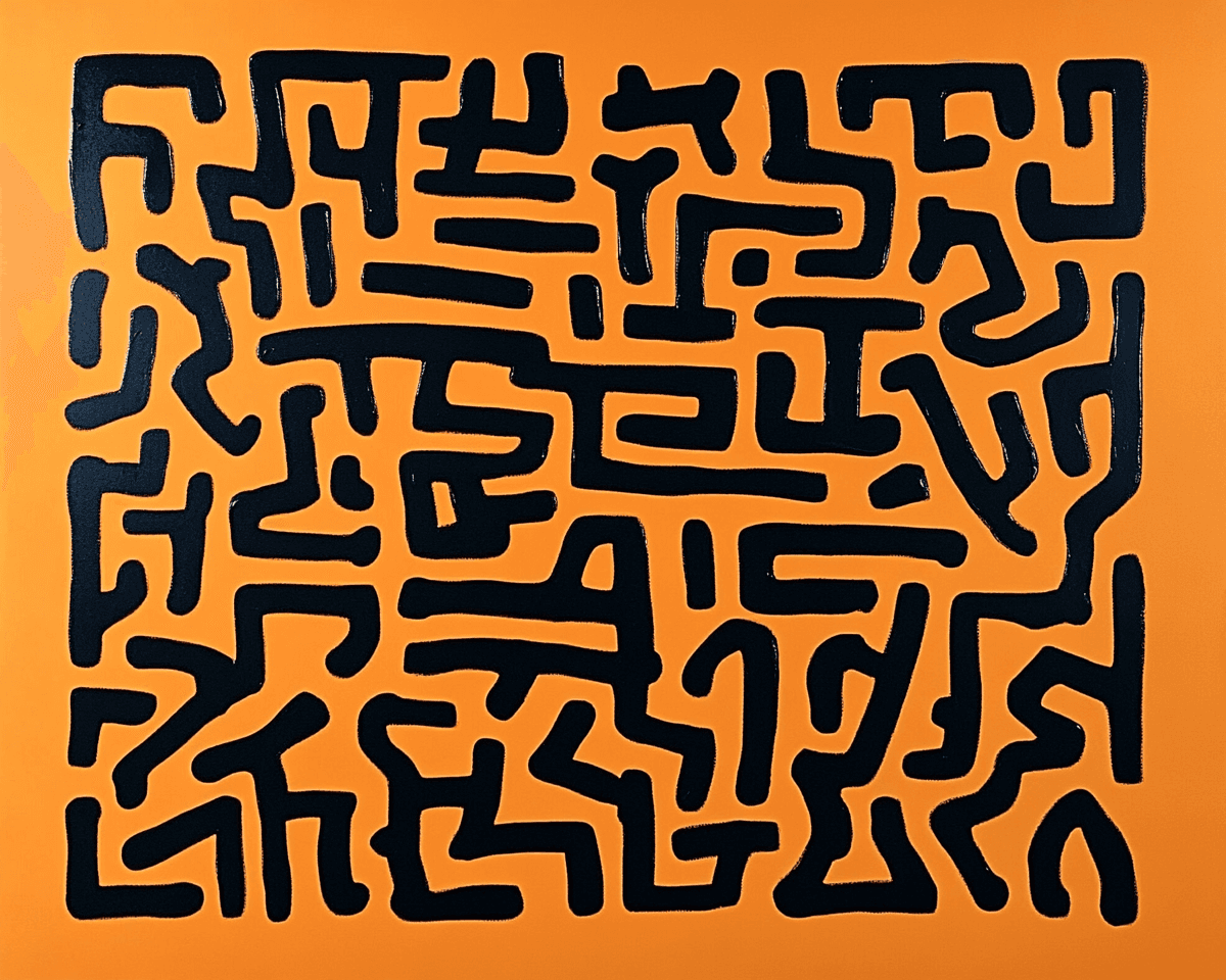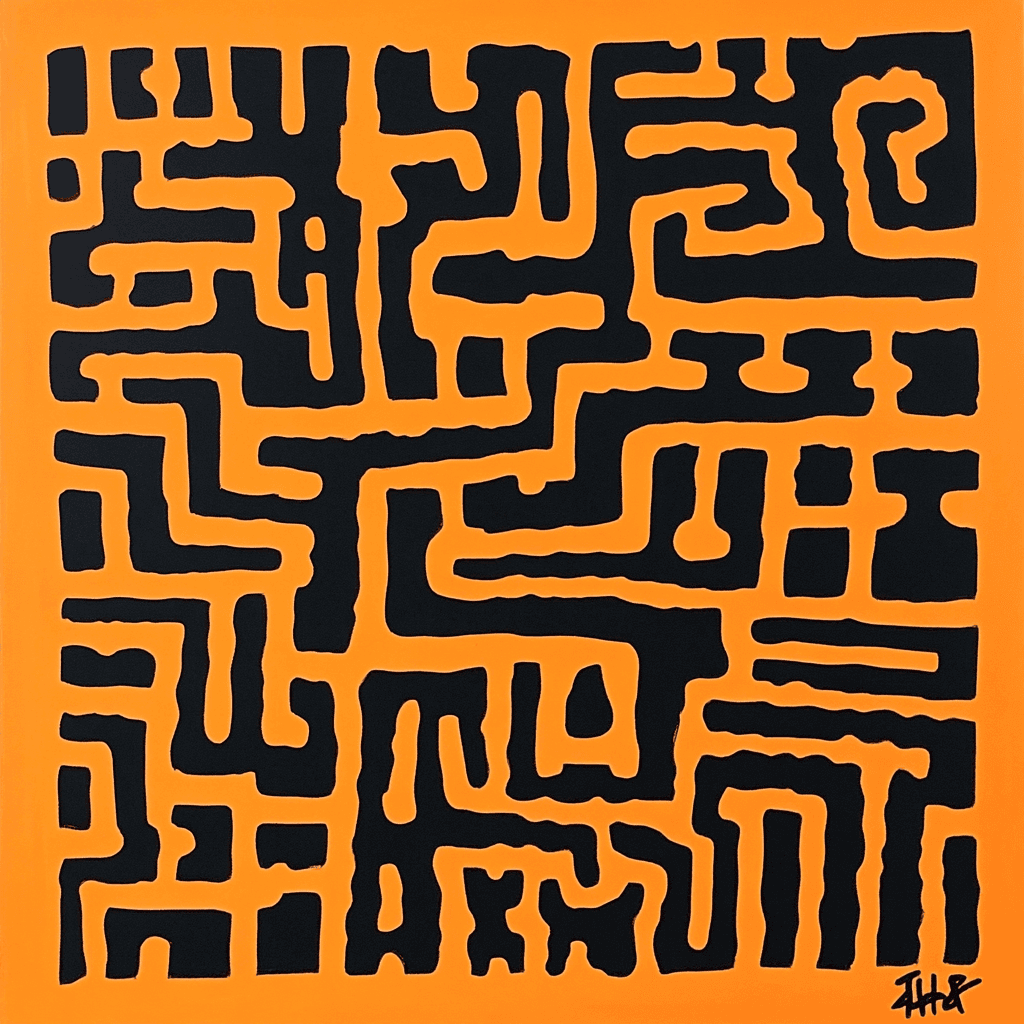 Les œuvres de Crychou sont une invitation à l'introspection, mêlant motifs complexes et miroirs pour questionner notre perception. L'utilisation de l'orange ajoute une profondeur émotionnelle captivante
